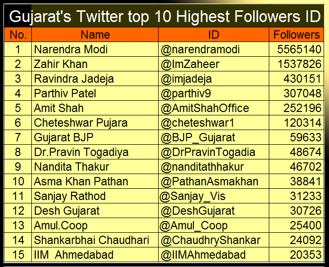 Posted in FROM FACEBOOK WALL Twitter मे गुजरात से 20k+ फोलोअर्स वाले प्रोफाइल्स Image• Posted on June 23, 2014August 9, 2014 by Sanjay Rathod Twitter मे गुजरात से 10k+ फोलोअर्स वाले प्रोफाइल्स ट्विटर मे गुजरात मे से ज्यादा 10k फोलोअर्स वाले प्रोफाइल्स Please Share This: Click to share on Follow Me (Opens in new window) Follow Me Click to share on WhatsApp (Opens in new window) WhatsApp Tweet Author: Sanjay Rathod SANJAY RATHOD Social Media Marketing Expert. Call me any Time: +91 9427738648 View All Posts