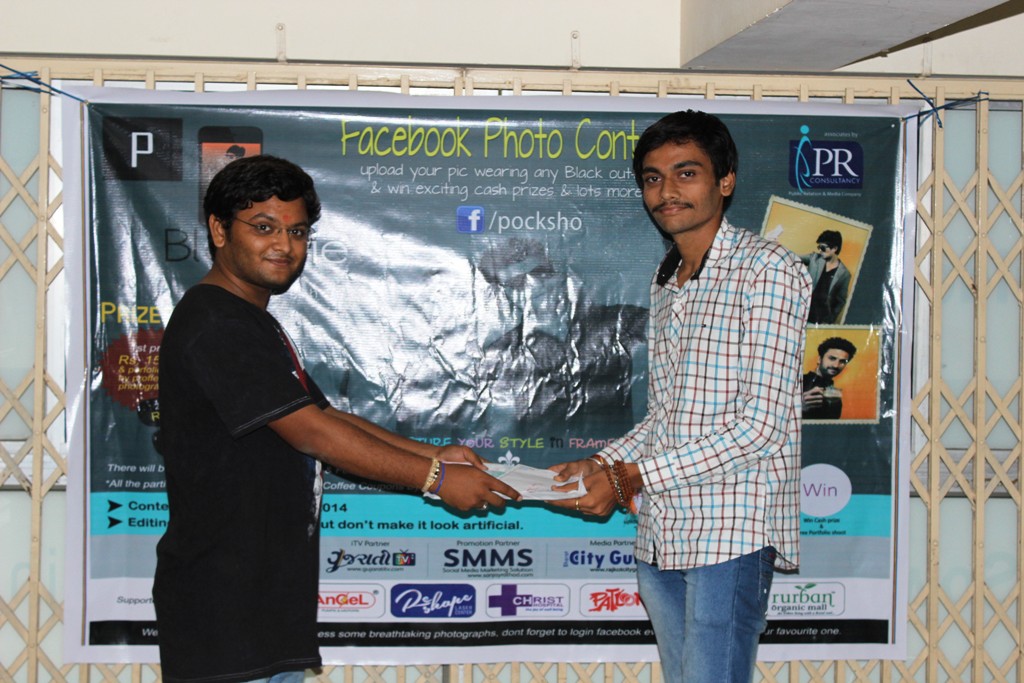 રાજકોટ મુકામે ગુજરાતીટીવી ખાતે પોકશો ફોટો કોન્ટેસ્ટના વિનરને ઈનામ વિતરણ પ્રસંગે તમામ સ્પર્ધક કે જેઓ ૧ થી ૧૦ ક્રમે આવેલા હતા તેઓ ખાસ ઉપસ્થિત રહ્યાં હતા અને આયોજકો તેમજ સ્પોન્સર્સ પણ વિશેષ ઉપસ્થિત રહી સ્પર્ધકોને પ્રોત્સાહિત કર્યા હતા રાજકોટ જેવા સોશિયલ મિડીયા ક્ષેત્રે ખુબ નાનું કહી શકાય તેવા શહેરમાં આવી ઈન્ટરનેશનલ કક્ષાની સ્પર્ધાને આટલું જબ્બર પ્રોત્સાહન મળ્યું અને ૨૦૦ થી વધુ લોકોએ પોતાના બ્લેક ફી માં ફોટોગ્રાફ્સ અપલોડ કરીને સ્પર્ધામાં ઉત્સાહભેર ભાગ લીધો તે સમગ્ર રાજકોટની સોશિયલ મિડીયા પ્રિય જનતા માટે ખુબ જ આનંદ અને ગર્વનો વિષય છે ભવિષ્યમાં પણ આવી ઈવેન્ટસ વધુ ને વધુ યોજાય તેવો ગુજરાતીટીવી અને એસ. એમ. એમ. એસ. રાજકોટનો પ્રયત્ન રહેશે અને આવું આયોજન કરનાર તમામ આયોજકોને અમારો સંપૂર્ણ સાથ અને સહકાર હંમેશા રહેશે.