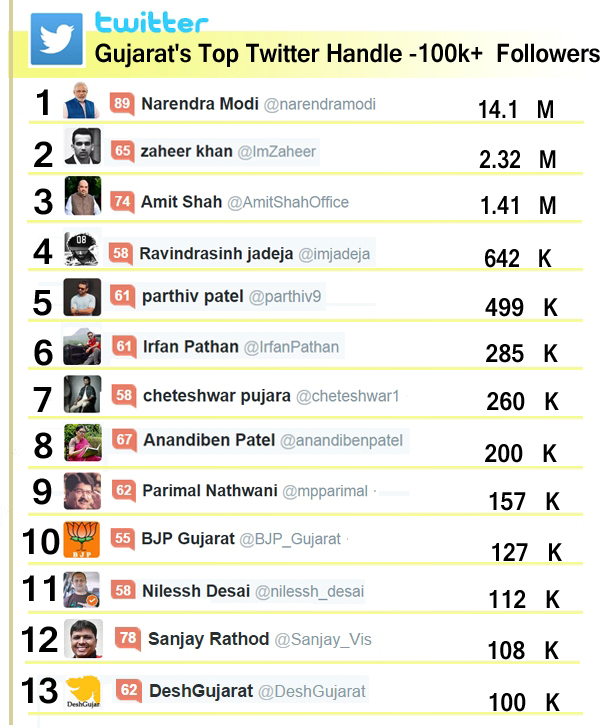 * सबसे बडी सिध्धि कल हासिल हुइ जब Twitter  मे 1 लाख फोलोअर्स के माइल स्टोन को छुआ. एसा करने वाला मे गुजरात का 12 वा व्यक्ति बना जीस के ट्वीटर मे 1 लाख से अधिक फोलोअर्स है.