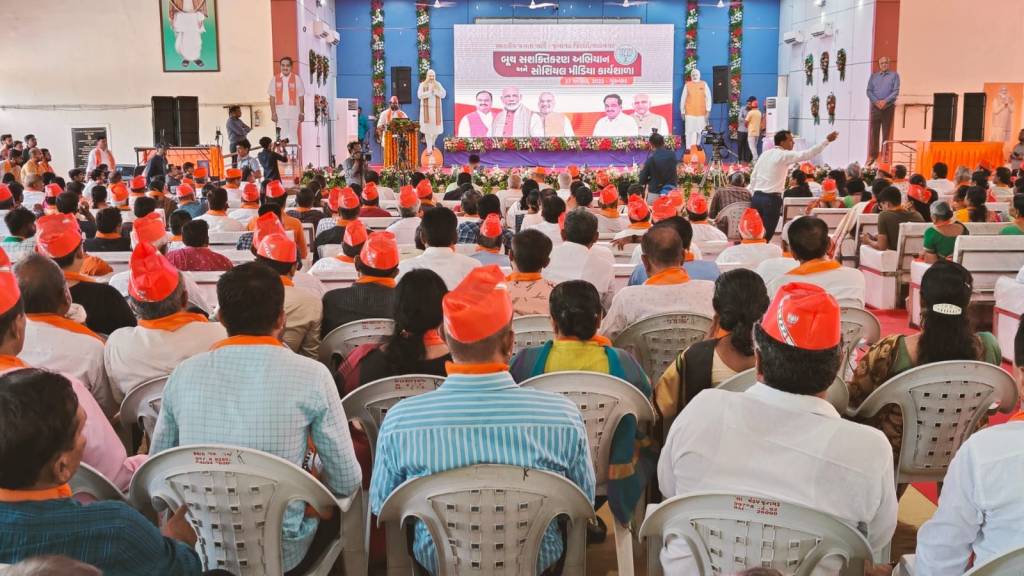 સોશિયલ મીડિયા વર્કશોપ કાર્યશાળા કૃષિ યુનિવર્સિટી ઓડિટોરિયમ હોલ જૂનાગઢ ખાતે પ્રદેશ પ્રમૂખ શ્રી સી.આર.પાટીલ સાહેબની અધ્યક્ષતામાં તેમજ પ્રદેશ સંગઠન મહામંત્રીશ્રી રત્નાકરજીની પ્રેરક ઉપસ્થિતિમાં જિલ્લા અને મહાનગર સ્તરની ટીમનો પ્રશિક્ષણ વર્ગ યોજાયો જેમાં જૂનાગઢ જિલ્લાના સોશીયલ મીડીયા કર્યો અને સિદ્ધિઓ અંગે સૌને માહિતગાર કરેલ.