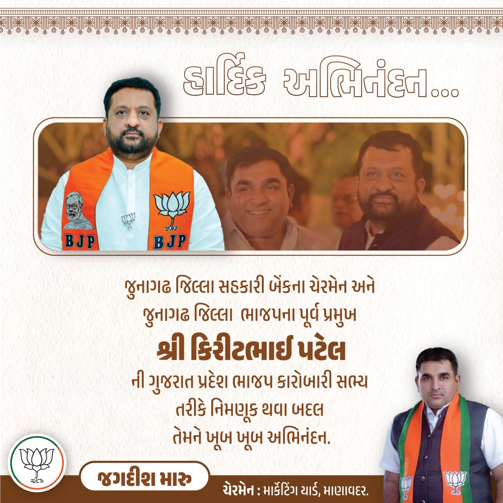 (Chairman – Marketing Yard, Manavadar. | General Secretary – BJP Bakshi Panch Morcha)